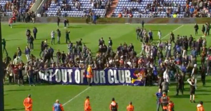 Εκατοντάδες οπαδοί «μπούκαραν» στον αγωνιστικό χώρο με το σφύριγμα της λήξης, σε ένα θέαμα που αρχικά μαρτυρούσε πως θα επακολουθήσουν βίαια σκηνικά. Ωστόσο, αυτό που έκαναν οι φίλοι της ομάδας ήταν να συγκεντρωθούν στο κέντρο του γηπέδου και να διαμαρτυρηθούν ειρηνικά, ξετυλίγοντας πανό κατά της διοίκησης το οποίο έγραψε χαρακτηριστικά «Φύγετε από τον σύλλογό μας».