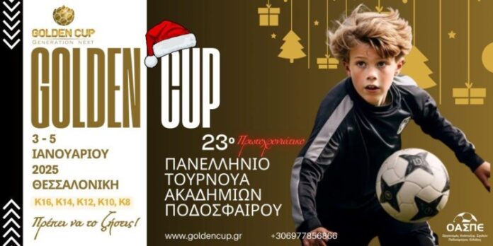 Το πολυαναμενόμενο 23ο Πρωτοχρονιάτικο Τουρνουά Ακαδημιών Ποδοσφαίρου “Golden Cup”, που διοργανώνει ο ΟΑΣΠΕ (Οργανισμός Ανάπτυξης Σχολών Ποδοσφαίρου Ελλάδας), επιστρέφει ανανεωμένο και γεμάτο ενθουσιασμό!
