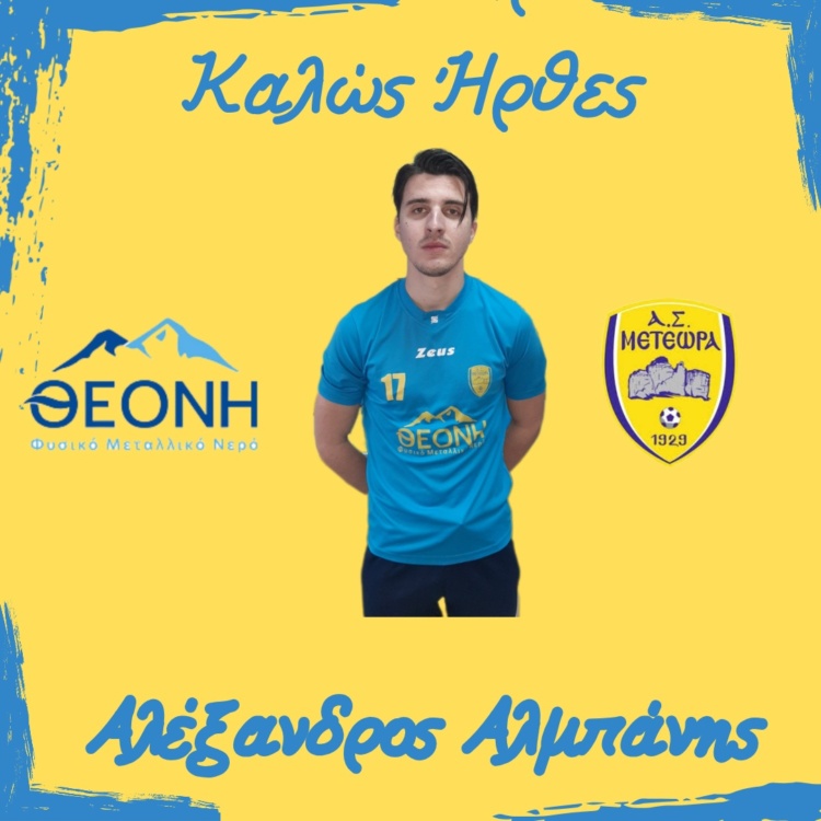 Ο ΑΣ Μετέωρα ανακοινώνει με μεγάλη χαρά την απόκτηση του μεσοεπιθετικού Αλέξανδρου Αλμπάνη ο οποίος αγωνίζονταν στον Διγενή Νεοχωρίου κι έχει αγωνιστεί στο παρελθόν τόσο στα τμήματα της Ακαδημίας όσο και της Ανδρικής μας ομάδας. Τον καλωσορίζουμε και του ευχόμαστε να είναι υγιής κι επιτυχίες μαζί μας.