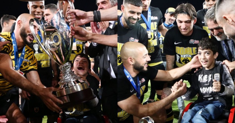 Η ΑΕΚ κατέκτησε το Κύπελλο και έγραψε ιστορία κάνοντας νταμπλ όμως ήταν μια συγκλονιστική στιγμή ανθρωπιάς που ξεχώρισε από τους πανηγυρισμούς. Οι παίκτες της Ένωσης πήραν το Κύπελλο και το πήγαν σε έναν μικρό φίλο του ΠΑΟΚ ο οποίος αντιμετωπίζει προβλήματα. Πανηγύρισαν μαζί του και η χαρά στο πρόσωπο του συγκλονίζει. Μια στιγμή ανθρωπιάς που μας θυμίζει ότι το ποδόσφαιρο ενώνει και η αγάπη για τον συνάνθρωπο δεν έχει χρώμα και φανέλ