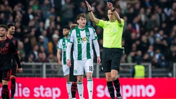 Σε οριστική διακοπή οδηγήθηκε ο αγώνας της Γκρόνινγκεν με τη Ναϊμέγκεν για την 30ή αγωνιστική της ολλανδικής Eredivisie, μετά τη ρίψη ποτηριού με μπύρα από οπαδό της γηπεδούχου ομάδας, προς τον α’ βοηθό διαιτητή στο 18 λεπτό του αγώνα.