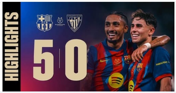 Επίδειξη δύναμης έκανε η Μπαρτσελόνα στον πρώτο ημιτελικό του ισπανικού Supercopa που διεξάγεται και φέτος στην Τζέντα της Σαουδικής Αραβίας, καθώς συνέτριψε με 5-0 την Αθλέτικ Μπιλμπάο, παίρνοντας έτσι με τον πλέον εμφατικό τρόπο το εισιτήριο για τον τελικό της Κυριακής (11/1) που θα γίνει στο «King Abdullah Sports City Stadium».