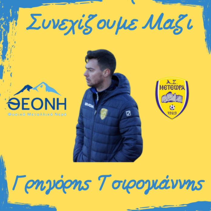 Ο ΑΣ Μετέωρα βρίσκεται στην ευχάριστη θέση να ανακοινώσει την ανανέωσης της συνεργασίας του με τον προπονητή Γρηγόρη Τσιρογιάννη ο οποίος βρίσκονταν στα πάγκο της ομάδας και τα προηγούμενα δύο χρόνια και του εύχεται καλή επιτυχία στο έργο που ανέλαβε.