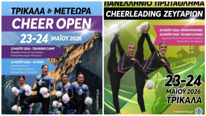 Η καρδιά του ελληνικού Cheerleading θα χτυπά δυνατά στη Θεσσαλία το διήμερο 23 και 24 Μαΐου 2026. Για πρώτη φορά, η πόλη των Τρικάλων θα φιλοξενήσει το Πανελλήνιο Πρωτάθλημα Cheerleading Ζευγαριών, ενώ παράλληλα θα διεξαχθεί το εντυπωσιακό Τρίκαλα & Μετέωρα Cheer Open 2026.