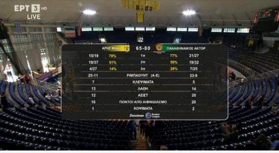 ΠΑΝΑΘΗΝΑΪΚΟΣ (Έργκιν Αταμάν): Μπαλτσερόφσκι 7, Γκραντ 13 (2), Ναν 11 (2), Γκριγκόνις 11 (1), Μήτογλου 6, Καλαϊτζάκης 3, Μωραϊτης, Σλούκας, Παπαπέτρου 2, Λεσόρ 15, Αντετοκούνμπο 2, Ερνανγκόμεθ 10 (2).