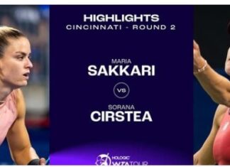Η Μαρία Σάκκαρη ξεκίνησε από τον 2ο γύρο του τουρνουά του Σινσινάτι, καθώς έχει bye στον 1ο γύρο, και κατάφερε, με ανατροπή, να ξεπεράσει το εμπόδιο της Σοράνα Κιρστέα και να προκριθεί στις «16».
