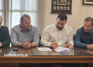 Υπογράφηκε σήμερα στο Δημαρχείο Δήμου Μετεώρων το μεγάλο έργο για την Χρυσομηλιά που αφορά την αναβάθμιση του γηπέδου προϋπολογισμού 642.871 χιλ. ευρω.
