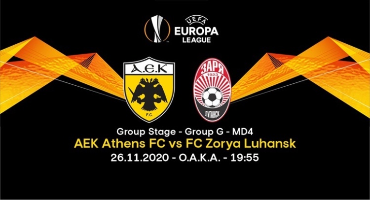 Στις 19.55 θα ξεκινήσει το παιχνίδι της ΑΕΚ με την Ζόρια για την 4η αγωνιστική της φάσης των ομίλων, στο ΟΑΚΑ.
