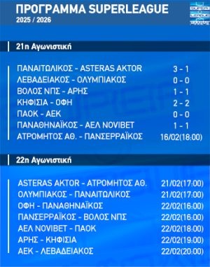 Τα 6 από τα 7 παιχνίδια της 21ης αγωνιστικής της Super League έγιναν το Σάββατο και την Κυριακή κι απομένει το ματς Ατρόμητος-Πανσερραϊκός για να ολοκληρωθεί.