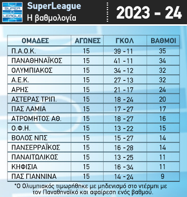 Η 15η αγωνιστική η δεύτερη για τον δεύτερο γύρο που διεξήχθηκε χθες και προχθές ήταν η τελευταία για το 2023 και το πρωτάθλημα θα συνεχιστεί και πάλι στις 3 Ιανουαρίου.