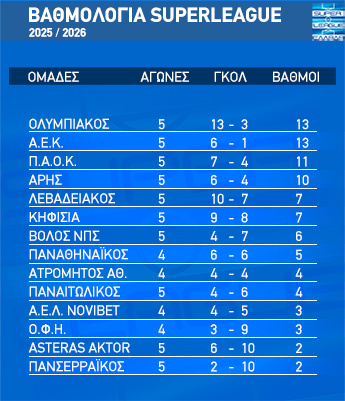 Super League: τα αποτελέσματα της Κυριακής, η βαθμολογία